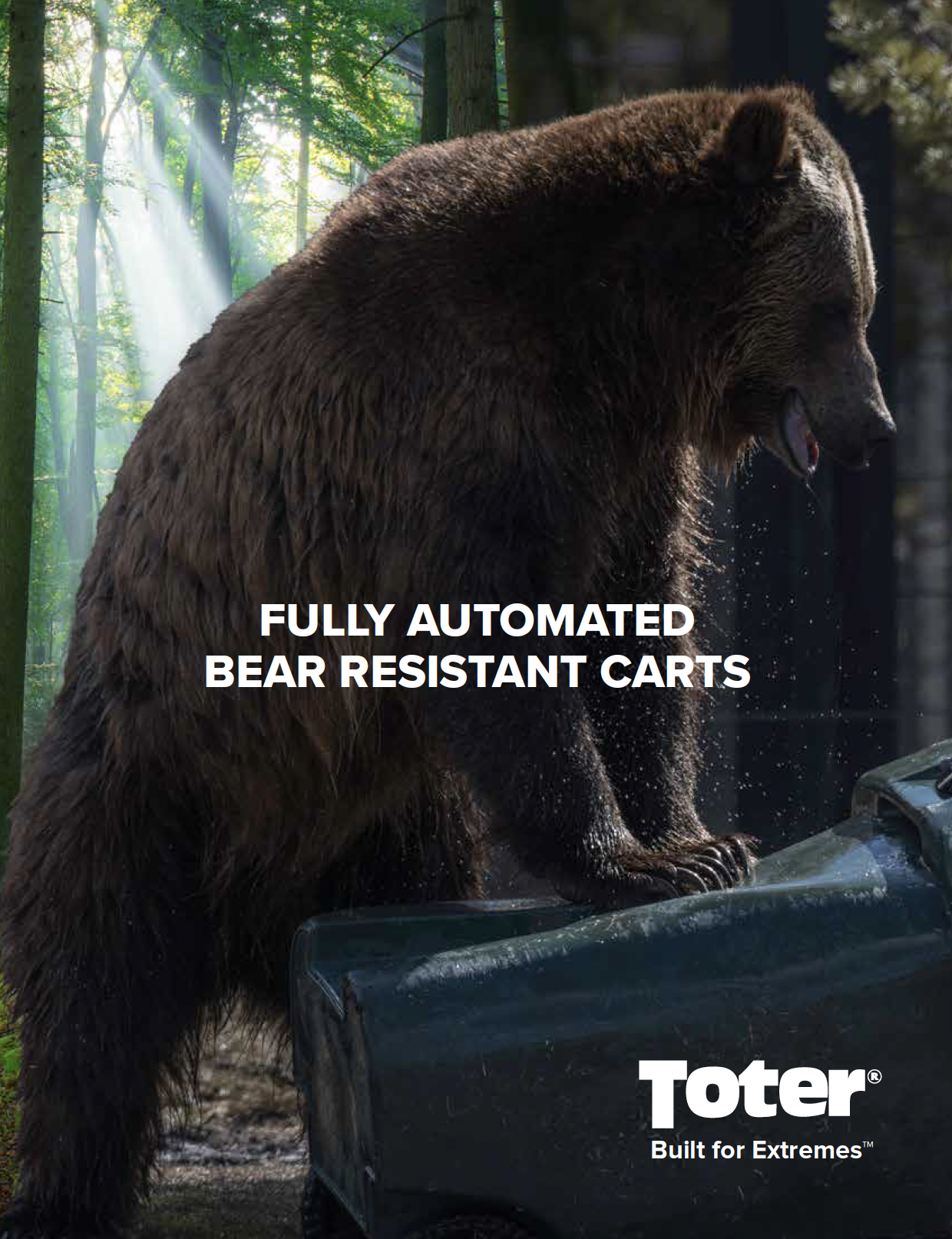 Toter’s Fully Automated Bear Resistant Carts are designed to minimize conflicts with bears and other predators. Our carts are constructed with our Advanced Rotational Molding™ process that creates an extremely durable trash can. We’ve armed them with a rugged rim to help defend against chewing, a double-walled lid, beefier handle and hinge, and minimized pry points, which makes them tough enough to withstand the strongest claws and jaws!